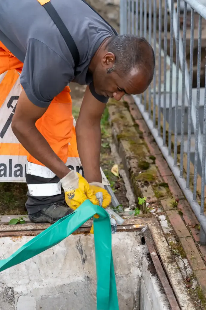 Das Wasser oder Material wird abgesaugt, der Schacht oder Kellerbereich gereinigt.